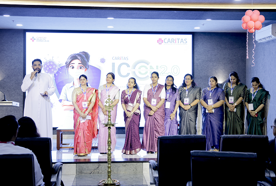 The program was graced by Rev. Dr. Binu Kunnath (Director & CEO, Caritas Hospital), Rev. Fr. Joice Nandikunnel (Joint Director – Operations), Rev. Fr. Stephen Thevarparambil (Joint Director – Services), Dr. Bobbie N. Abraham (Medical Director, Caritas Hospital), and Dr. Ajith Venugopal (COO, Caritas Hospital). The event was led by Dr. Presoon Kuruvilla, Dr. Lakshmi Natarajan, Ms. Jency Jose, and Rev. Sr. Shiji Jose.