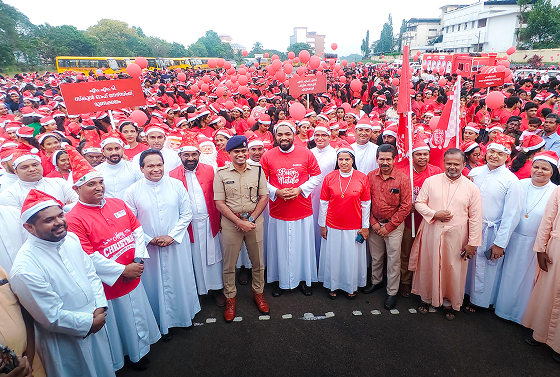 This year’s Christmas message procession featured more than 5,000 Santa Clauses, creating a spectacular sight. Children dressed in red and cheerful Santas led the parade, spreading joy and excitement among the people of Kottayam.