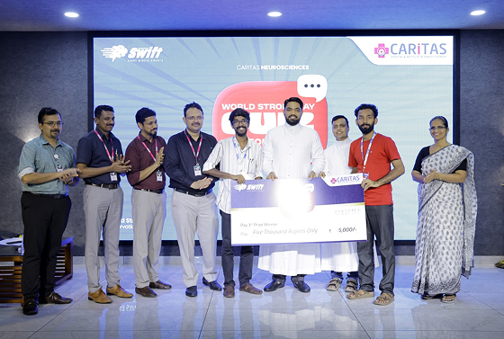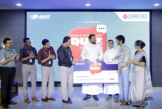 The Programme, aimed at raising awareness on stroke care, symptom recognition, and preventive measures, was led by renowned quiz mentor Mr. Siddharth R. Vailoppilly. Rev. Fr. Jinu Kavil, Joint Director, Administration, delivered the welcome address. Rev. Fr. Stephen Thevarparambil, Joint Director, Services, Prof. Sr. Lizzy John, Vice Principal of Caritas College of Nursing, and consultants from Caritas Neurosciences were also present at the event.