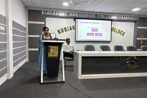 Caritas Hospital & Institute of Health Sciences and Caritas Life ( Caritas Social Responsibility) , in collaboration with the National Service Scheme and Kuriakose Gregorios College, Pampady, successfully organized an awareness session on Breast Cancer Awareness October 15th.The session was led by Dr. Thomas Babu (Consultant, Medical Oncology) and Dr. Surabhi S (Consultant, Gynaecologic Oncology), who shared valuable insights on breast cancer prevention, symptoms, diagnosis, and care.